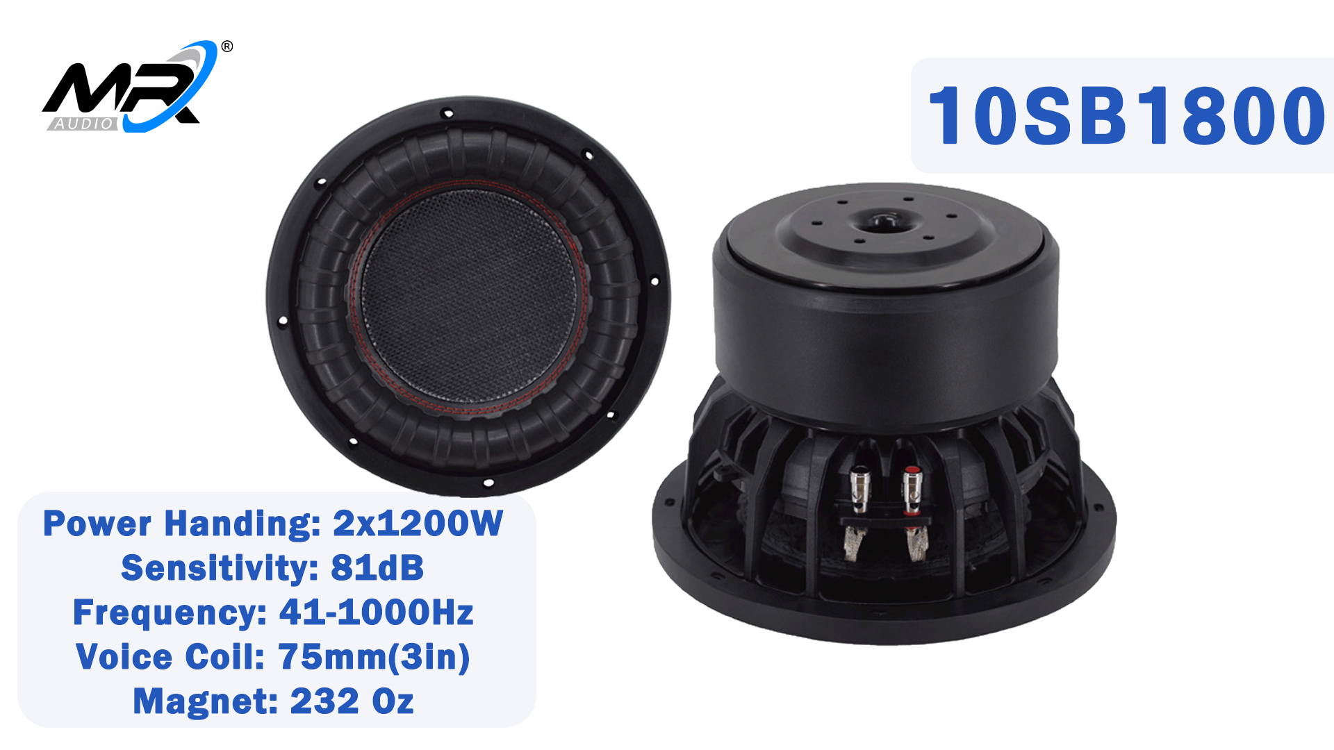 10SB1800 delivers the ultimate in powerful lowend performance with sustained power and a wide frequency range. Powerful bass output, combined with 81dB sensitivity and a large 75mm voice coil, ensures clarity and depth of sound quality, even at high power output, the low frequencies remain strong and stable. Whether its in music or movies, it delivers incredible bass power, and immersive sound makes every low frequency more powerful.